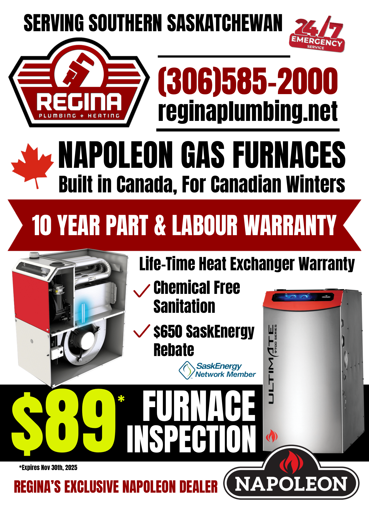 Regina Plumbing and Heating is proud to be the only Napoleon HVAC Dealer in the Regina area, selling true Canadian Made Furnaces & Air Conditioners.